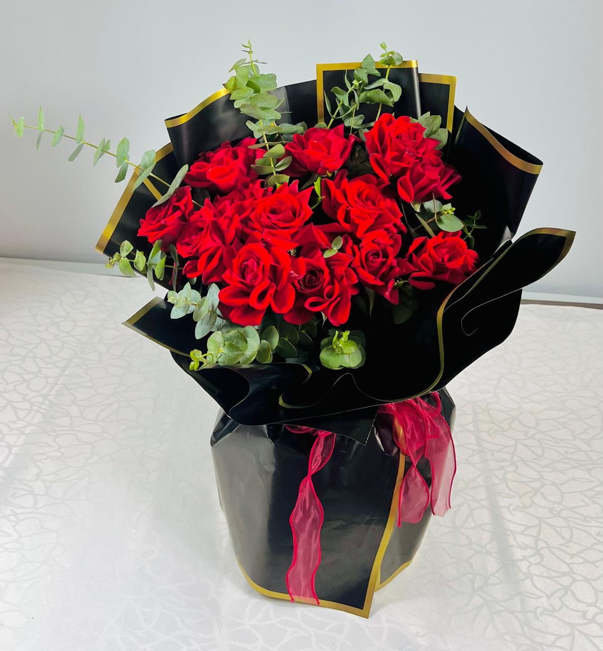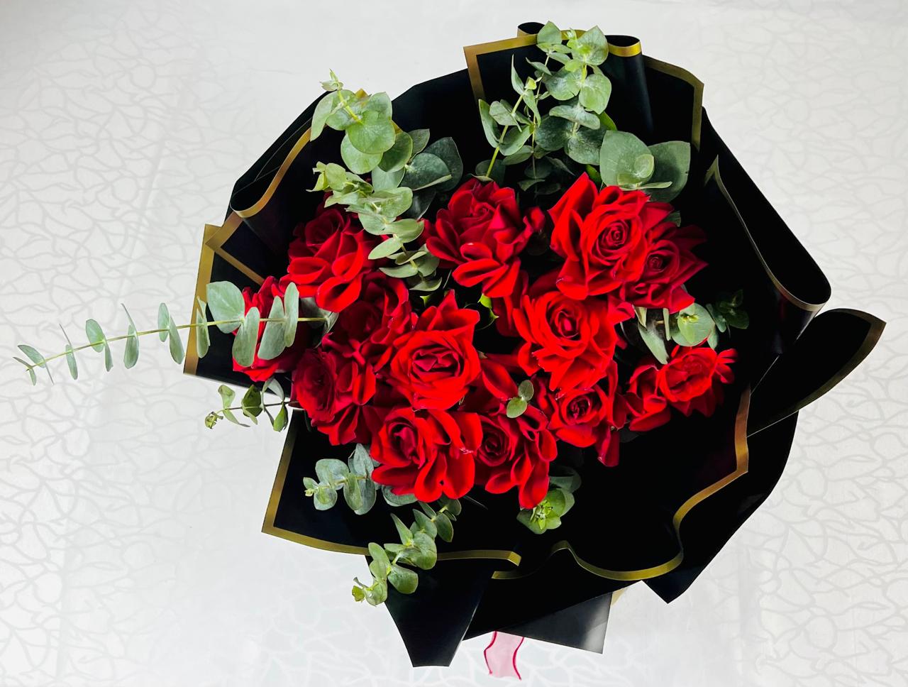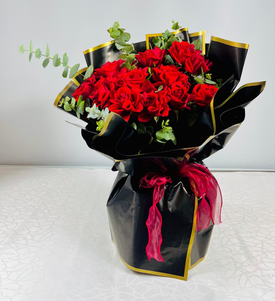 A timeless expression of elegance, the Perfect Charm bouquet features 15 Premium Ecuador Red Roses and 3 Eucalyptus sprigs. This classic arrangement is perfect for anniversaries, birthdays, or any occasion that calls for a touch of sophistication. Rose Reverie is the most affordable and best flower place in Dubai, Visit us at Millennium Central Hotel, Downtown Dubai.
